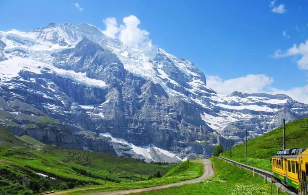 Jungfrau(少女峰)是瑞士的著名山峰,海拔4,158米,是阿尔卑斯山脉的最高峰之一,宛如一位少女,披着长发,银装素裹,恬静地仰卧在白云之间。